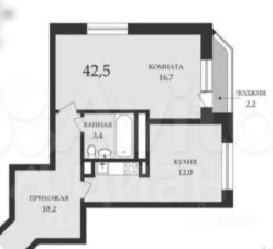 42,5 м², 1-комн., 7/27 этаж