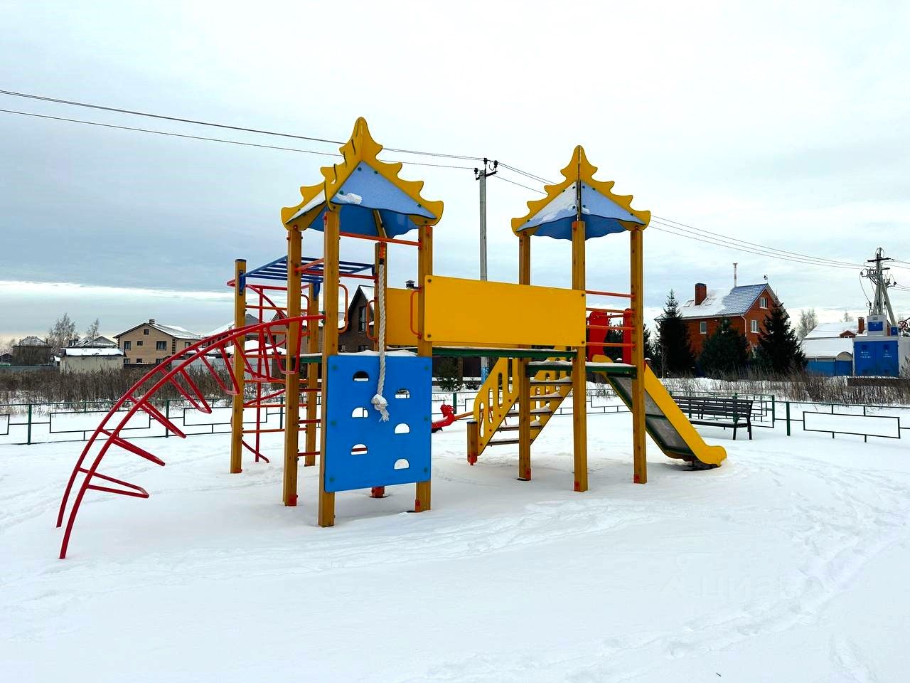 В трех минутах от участка находится оборудованная детская площадка.